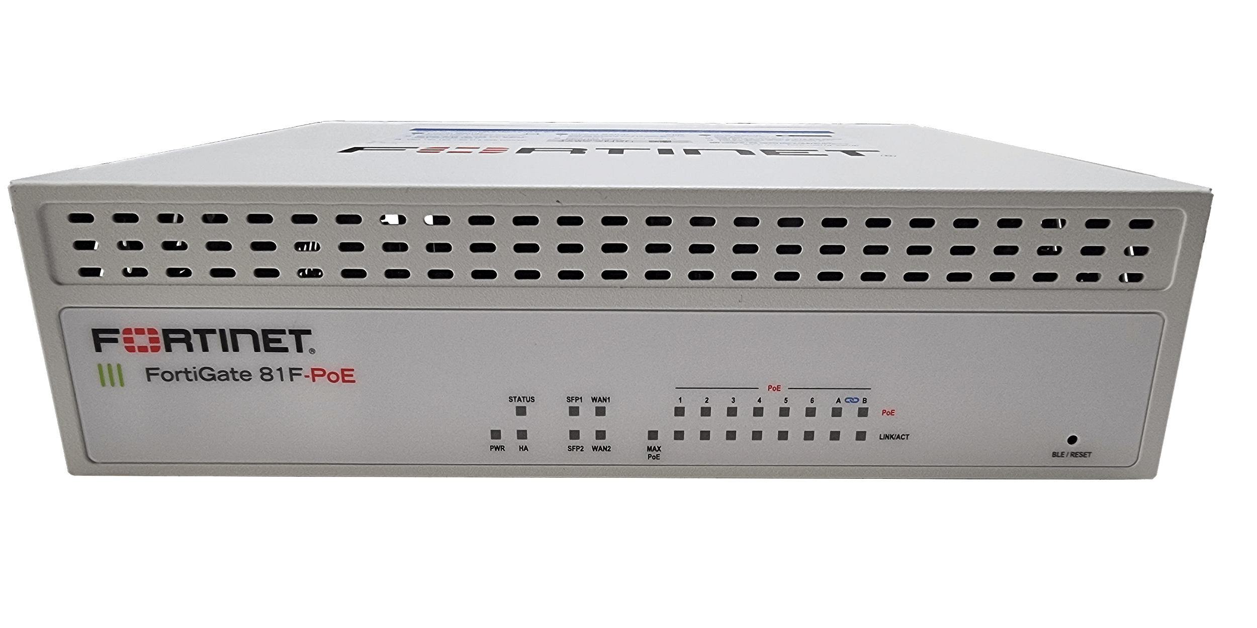 O firewall FG-81F-POE é compacto protege redes corporativas e distribuídas. Com 8 portas PoE+, 128 GB de armazenamento e taxas de até 10 Gbps, oferece segurança avançada com desempenho confiável.